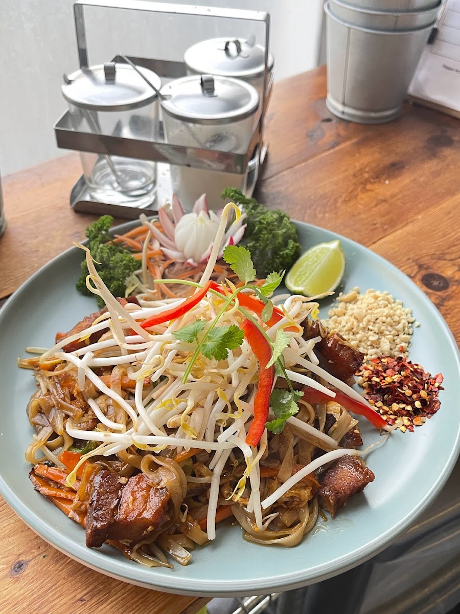 Very tasty Thai food and friendly service! The chicken satay skewers were very delicious, as were the vegetable spring rolls. Lovely pork pad Thai and a very tasty, not too spicy, beef green curry with rice. The restaurant dining area is small and cosy - you share tables with other diners and they have a walk in as well as online delivery/takeout service. The food came out very quickly after ordering and the staff were all friendly and didn't rush you. Paying by cash gives a 10% discount which is great. We will be coming here for our Thai food from now on!
